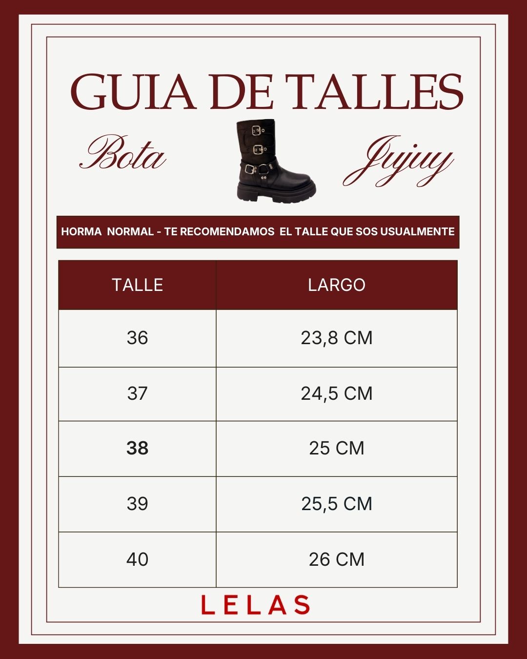 Recomendamos medir el pie y comparar con la tabla de talles antes de comprar.