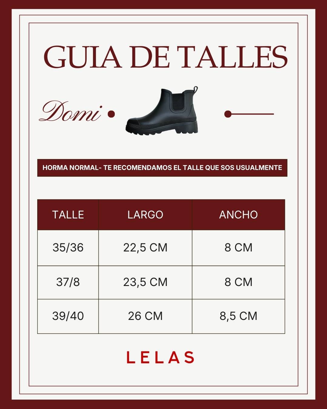 Las medidas indicadas en la tabla corresponden a la plantilla interna, no a la suela.
